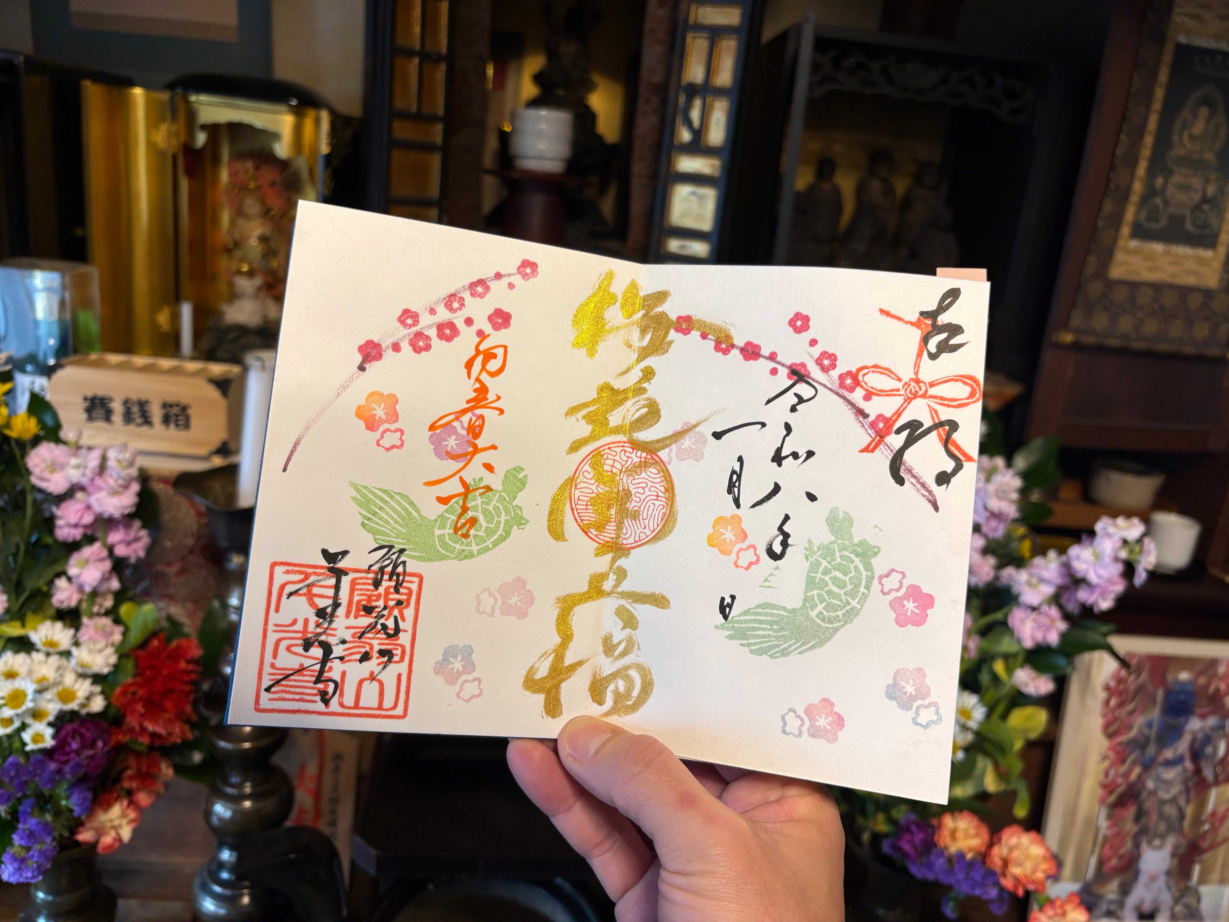 令和8年1月限定・花と折り紙シリーズ【梅花開五福】梅と亀(3枚目は直書きです)