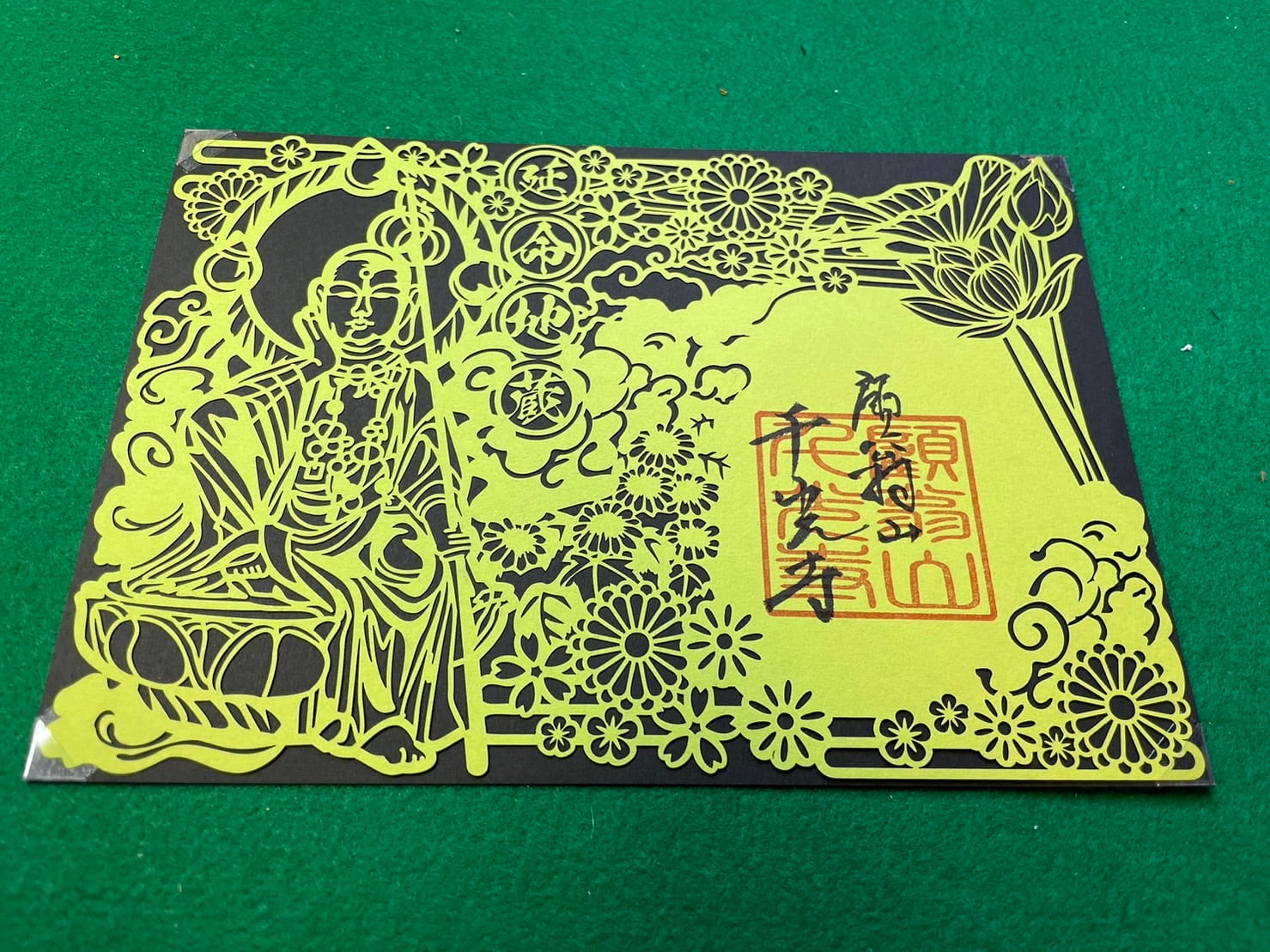 千光寺の御本尊、延命地蔵菩薩様の切り絵見開き御朱印が完成しました。