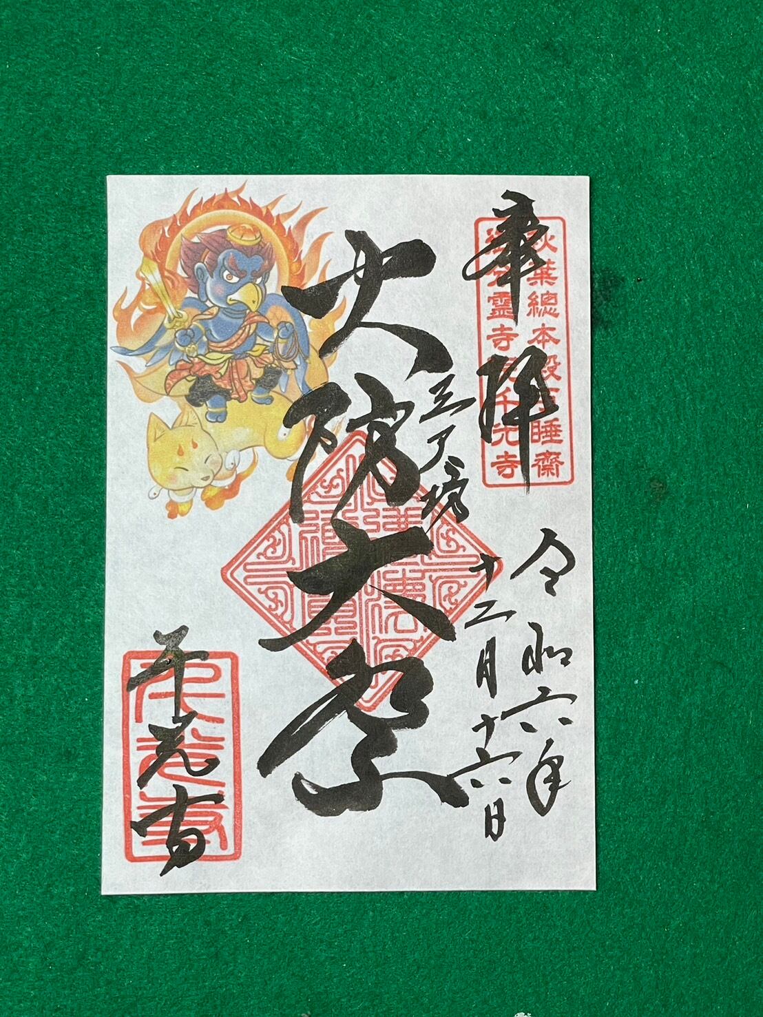 令和6年12月限定御朱印・秋葉三尺坊大権現「火防大祭」片面(3枚目は直書きです)